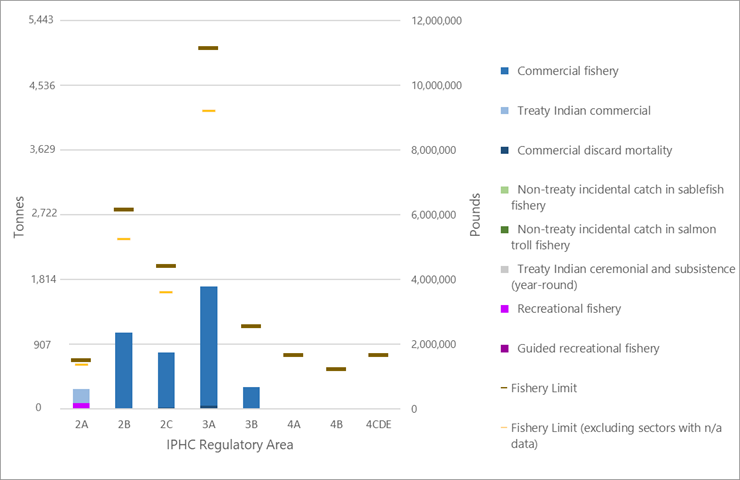 | IPHC Regulatory Area | Fishery limits (net weight) | Landings (net weight) | |||||||||||||||||||||||||||||||||||||||||||||||||||